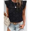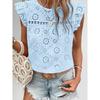 Small Sweet Summer New Western Style round Neck Crochet Hollow White Flying Sleeves Short sleeve Shirts Top Women