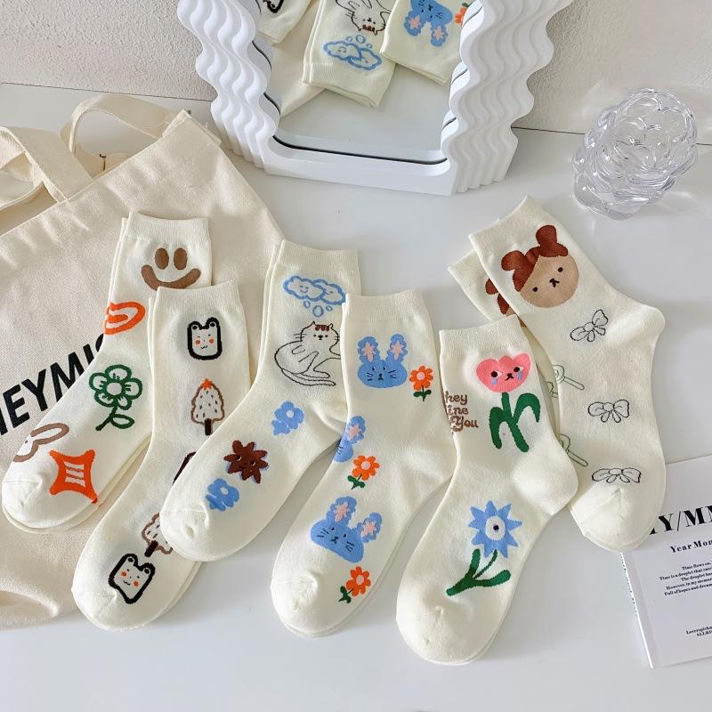 Damen Frühling und Herbst Niedlich Cartoon Persönlichkeit Graffiti In Kniestrümpfen