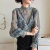 Women Blouse Chiffon Shirt Women's Long-Sleeved Spring Printed Lace Shirt Top
