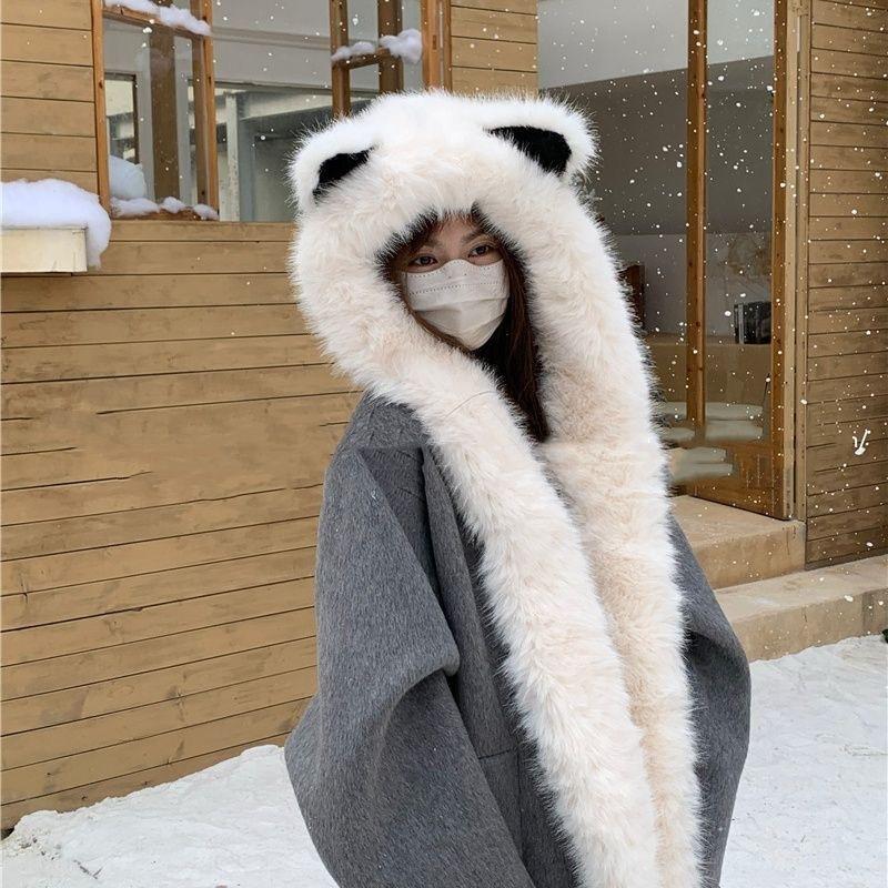 Verdickte Plüsch-Fuchsöhren-Mütze, Schal integriert Herbst und Winter kalt und warm Lei Feng-Mütze