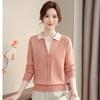 Spring and Autumn New Knitted Sweater Sweater Fake Two-piece Mom Women's Clothing Medium and Old Fashion Bottom Shirt