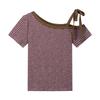 Kumikumi Sweet and Spicy Style Sloping Shoulder Strap Short sleeve T-shirt Women Summer Retro Stripe Slimming All-Match off-Shoulder Top
