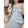 French Style Temperament Stylish Ruffles off-Shoulder Shirt Women's Clothing Summer Gentle Younger Blue off-the-Shoulder Tops