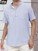 Summer New Men's Lightweight Cotton Linen Short Sleeve Henley Neck T-shirt - Breathable Casual Solid Color Tops Basic Style Tees