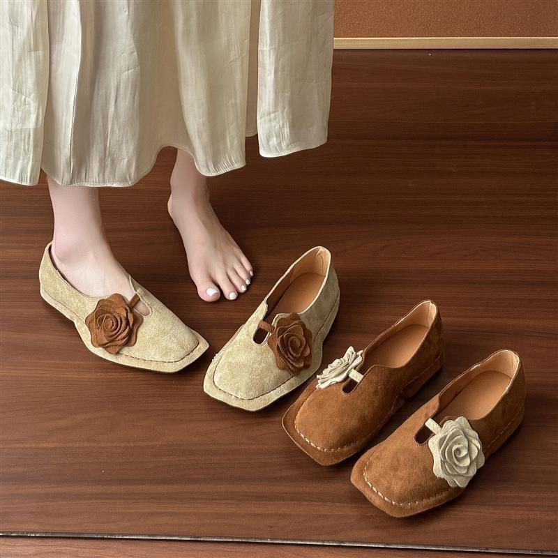 Retro Nische Blume Quadratkopfschuhe Damen Sommer und Herbst flache weichsohlige handgefertigte Schuhe Kinder