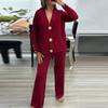 Herbst Winter Damen Strickpullover Sets Große Goldknopf V-Ausschnitt Strickjacke Mäntel Conjunto Hohe Taille Baggy Weite Bein Hosen Anzüge