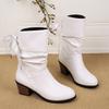 Neue Mode Stiefel Damen Herbst und Winter Keilabsatz Mittelhoher Schaft Spitz Damen Martin Stiefel