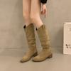 Vintage Brown Mouth Pile Medium Boots Women's Shoes Spring Autumn Winter Pointed Western Cowboy Boots