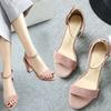 2025 neue Sandalen mit dickem Absatz 7cm Damen Sommer vielseitig große Größe High Heel mittlerer Absatz Ein-Wort-Schnallenriemen Sandalen offene Zehen
