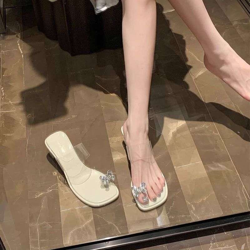 Französisches Strass-Schmetterlings-Flip-Flop-Set für Damen-Sommerbekleidung 2025 neu modische vielseitige coole Hausschuhe mit dickem Absatz