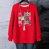 Damen Weihnachts-Print Rundhals Langarm T-Shirt Sweatshirt Oberteil