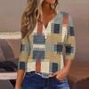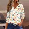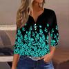 Damen-T-Shirt, T-Shirt, bedruckt, Knopfleiste, 3/4-Ärmel, tägliches Wochenende, modisch, Basic, V-Ausschnitt, normales Oberteil