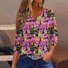 Damen T-Shirt mit Aufdruck, Knopfleiste, 3/4-Ärmel, modisch für den Alltag und das Wochenende, Basic, V-Ausschnitt, normales Oberteil