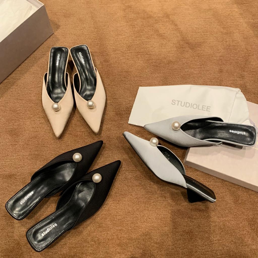 Schaffell-Traubenmutter, derselbe spitze Kopf, exquisite Perlsatin-Slipper, Damen-Sommerbekleidung, lässige Muller-Tasche Kopf halbe Schleppe