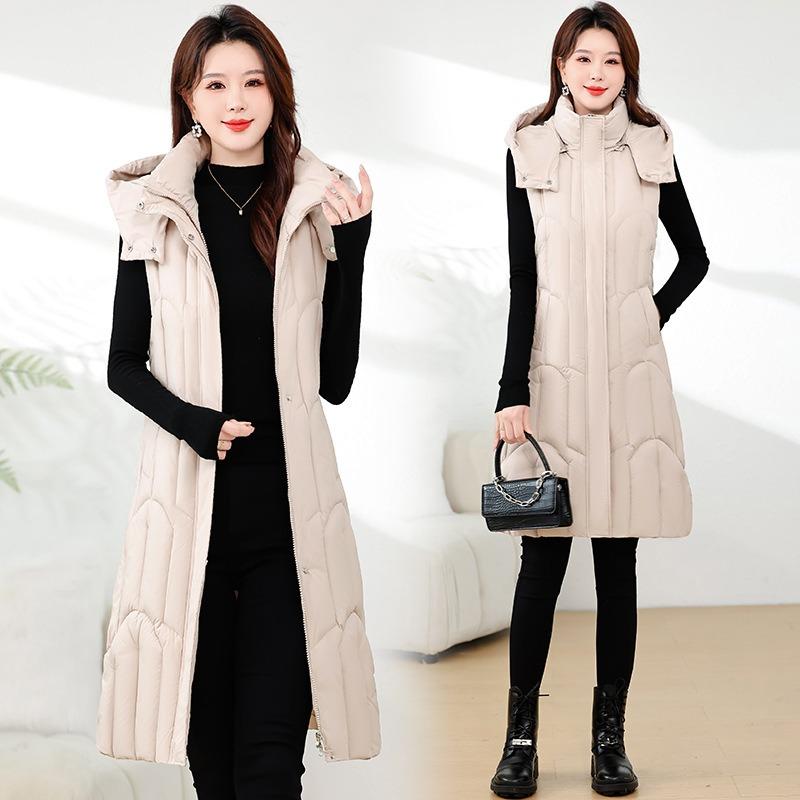 Autumn and winter new down cotton vest women wear medium and long over the knee waist medium vest jacket thick