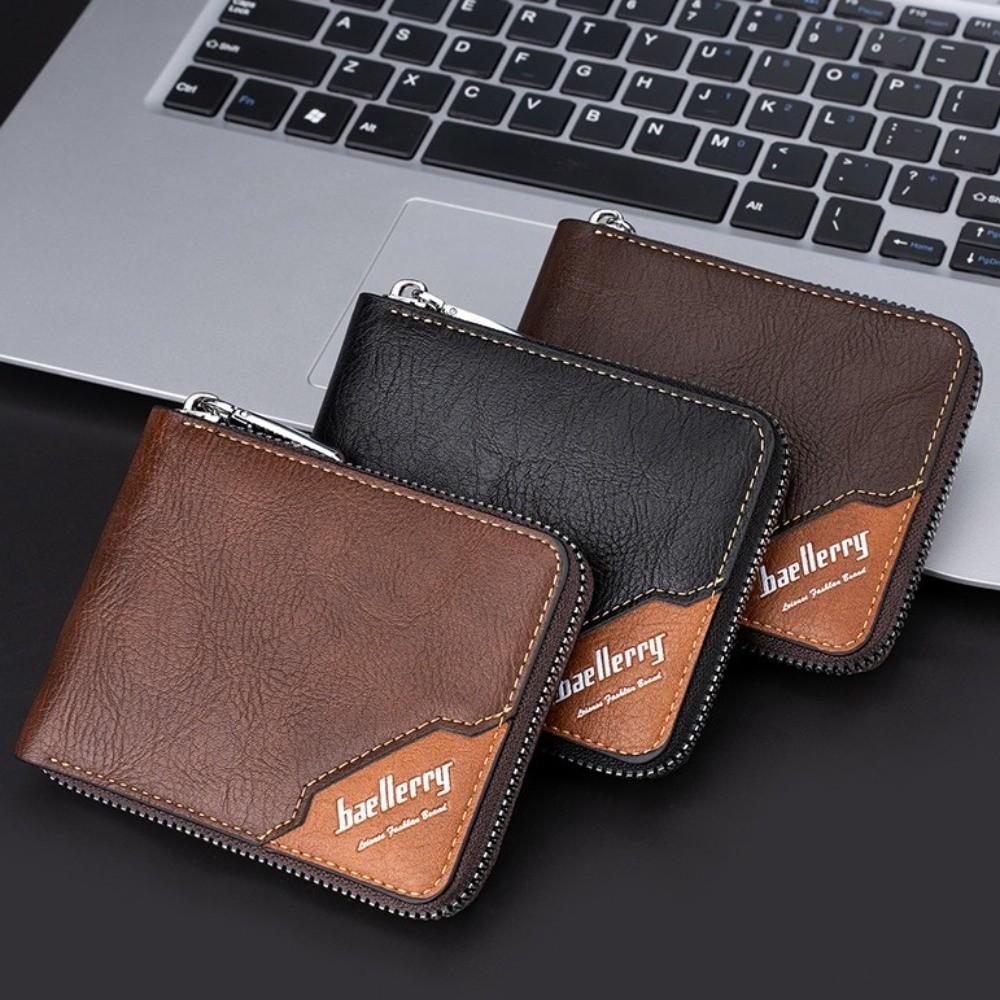 Leather Anti-theft Cash Bag Zipper Card Bag Pocket Purse Casual Men's Short Wallet Business