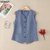 VONDA Damen Lässige Ärmellose Karierte Knöpfe Oben Weste Tanktops