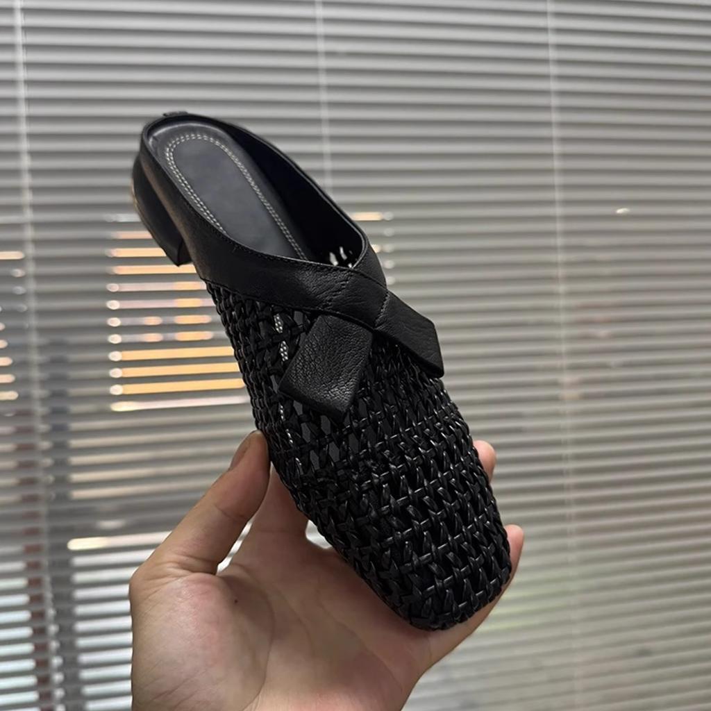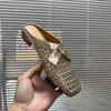 Mode Square Toe Hausschuhe Damen Sommerschuhe Luxus Pantoletten Mittlere Flechtwerkabsätze Weibliche Pantolette Cover Designer Pantoletten Weicher Block Mode