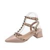 Modische Sandalen für Damen Ein Wort Sommer 2024 Spitz Zehennieten Schuhe Blockabsatz Damenschuhe mit Riemen Das Beste Designer Luxus H