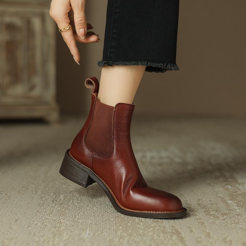 Mode Kaky's Neue Runde Spitze Echtes Leder Rindsleder Mittelhoher Absatz Große Kurze Stiefel Chelsea Mode Stiefel