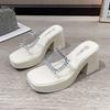 Coole Hausschuhe Damen Oberbekleidung 2025 Sommer neue Mode Ein-Wort-Slipper Strass Halbschuhe vielseitige Plateau High Heels Hausschuhe