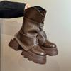 Braunes Maillard Plateau Martin Stiefel Damen 2025 neue Sommer Einzelstiefel Kurzstiefel erhöhend Pile Pants Schaftstiefel