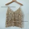 Nischen Damen Pailletten Perlen Camisole: Sexy, Figurformende V-Ausschnitt Weste