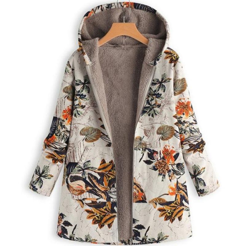 Damen Winterjacke mit Kapuze, warm, mit Reißverschluss, lange Ärmel, Fleece, Vintage-Stil, Mantel