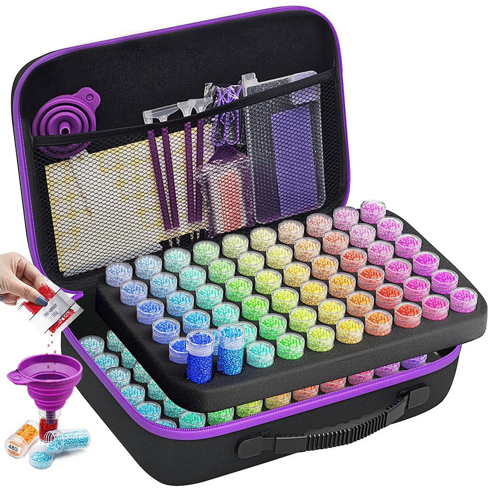 DIY Diamantmalerei Werkzeug Aufbewahrungstasche mit 30, 60 und 120 Fächern, unterverpackt in 10g Diamantflaschen, Handtasche