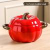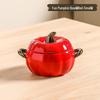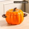 Kürbisförmige Keramik-Suppenschüssel mit Deckel - Großes Doppelohr-Design, Perfekt zum Servieren von Schneckenreisnudeln oder Nudelgerichten