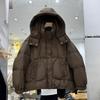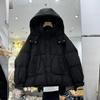 Fashion white hooded round buckle down jacket women's short winter new loose warm white duck down jacket