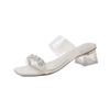 Transparente Kristallabsatz-Sandalen Damen Sommer 2025 neu chinesischer Stil Strass dicker Absatz Feenstil High Heel Pantoletten