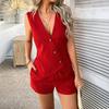 Sommer Elegant Mode Einfarbig V-Ausschnitt Knopf Unregelmäßige Weste Schnürshorts Set Damen Ärmelloses Top Anzug