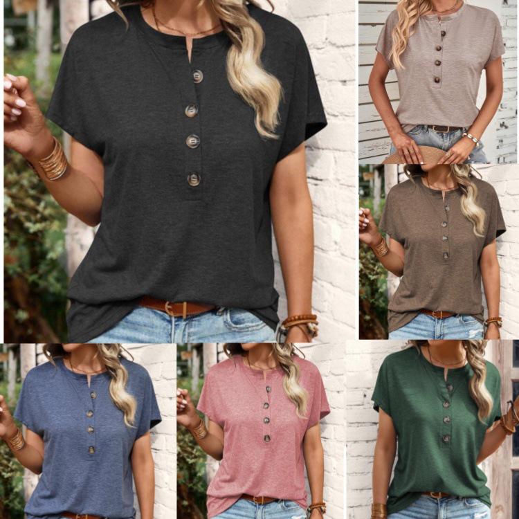 2025 Sommer Damen Einfarbig Lässig Rundhals Kurzarm T-Shirt