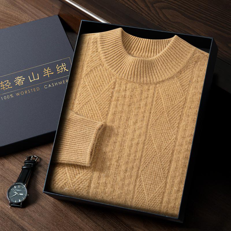 Embrace the cozy warmth and timeless style of this Men's Cashmere Cable Knit Sweater, designed for the Autumn/Winter 2025 season. Crafted with a luxurious blend of fine cashmere, this sweater features a loose fit, catering to both comfort and contemporary fashion. The semi-high neck adds a touch of sophistication, while the long sleeve design ensures ample coverage during cooler months. Its solid pattern offers versatility, making it a perfect match for any wardrobe ensemble. Ideal for those who appreciate gentle elegance and premium comfort in their apparel.