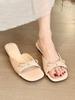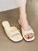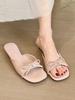 Flieder-Schönheit! Temperament Lackleder quadratischer Kopf mit Schleife Absatz Sandalen Damen Sommer flache Sandalen