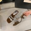 Hausschuhe Damen Oberbekleidung Sommer 2025 neue Sandalen mit dickem Absatz eckige Zehenpartie coole Hausschuhe mit Rock Damenschuhe Einwort-High Heels