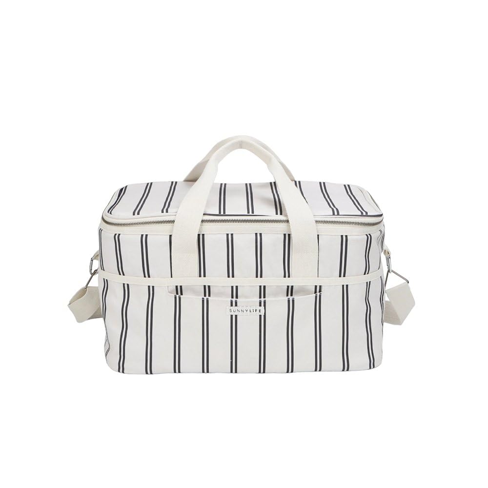 This refreshing striped cooler bag has a large 30L capacity and keeps contents cool for 4 hours. It comes with a detachable shoulder strap for easy carrying.