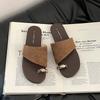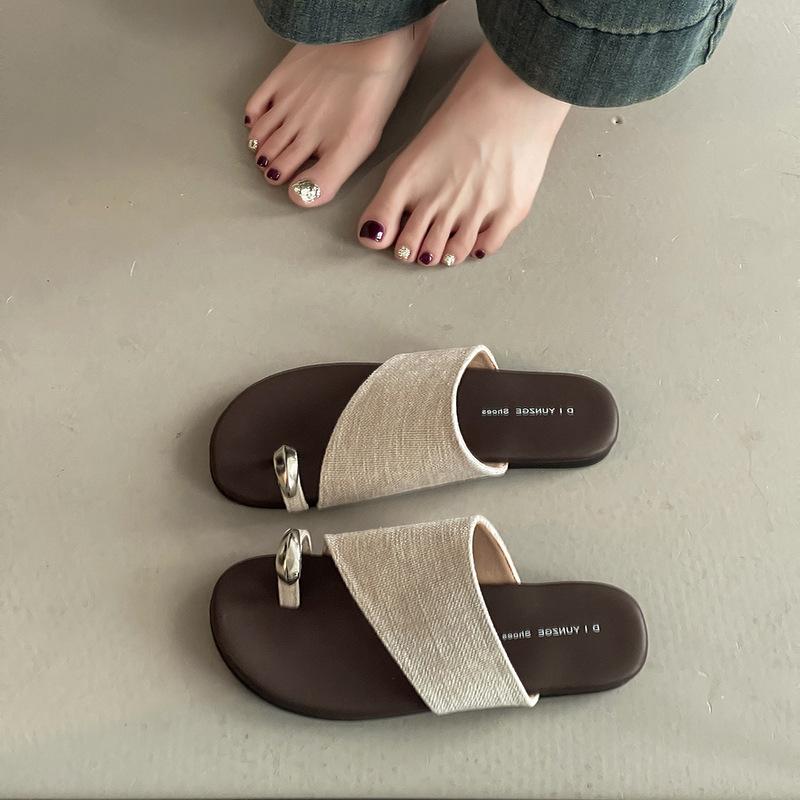 Strass Koreanische Version Nische Ein-Wort-Set Zehenslipper Damen Sommer Retro Mode Flachboden-Sandalen Atmungsaktive Lässige Coole Slipper
