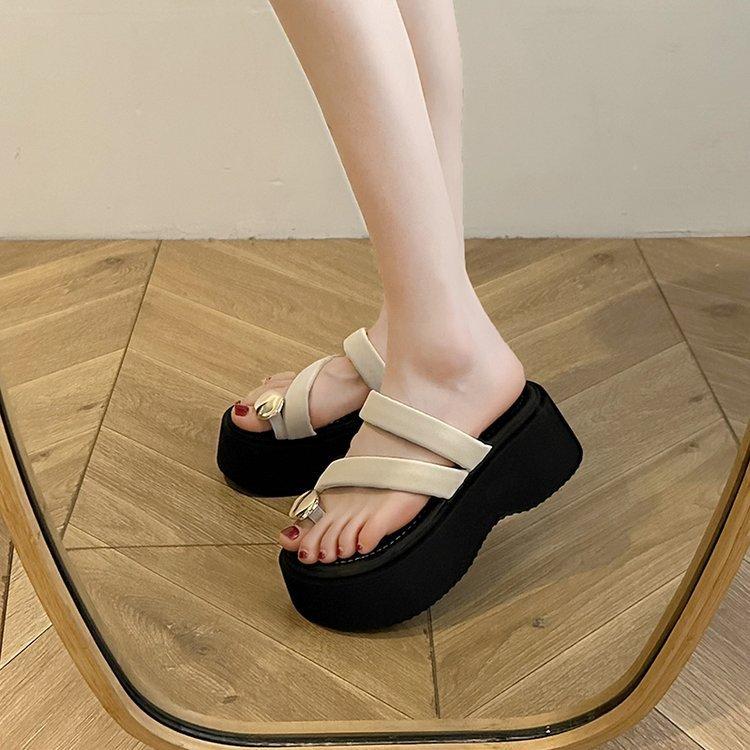 Fashion metal cover, toe thick-soled cool slippers for women in the summer of 2025, new models for small people to increase their height and wear beac