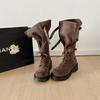Mode Western Ritterstiefel Damen 2025 Frühling und Sommer neu braun Retro Gürtelschnalle Schnürstiefel Britische Damenstiefel