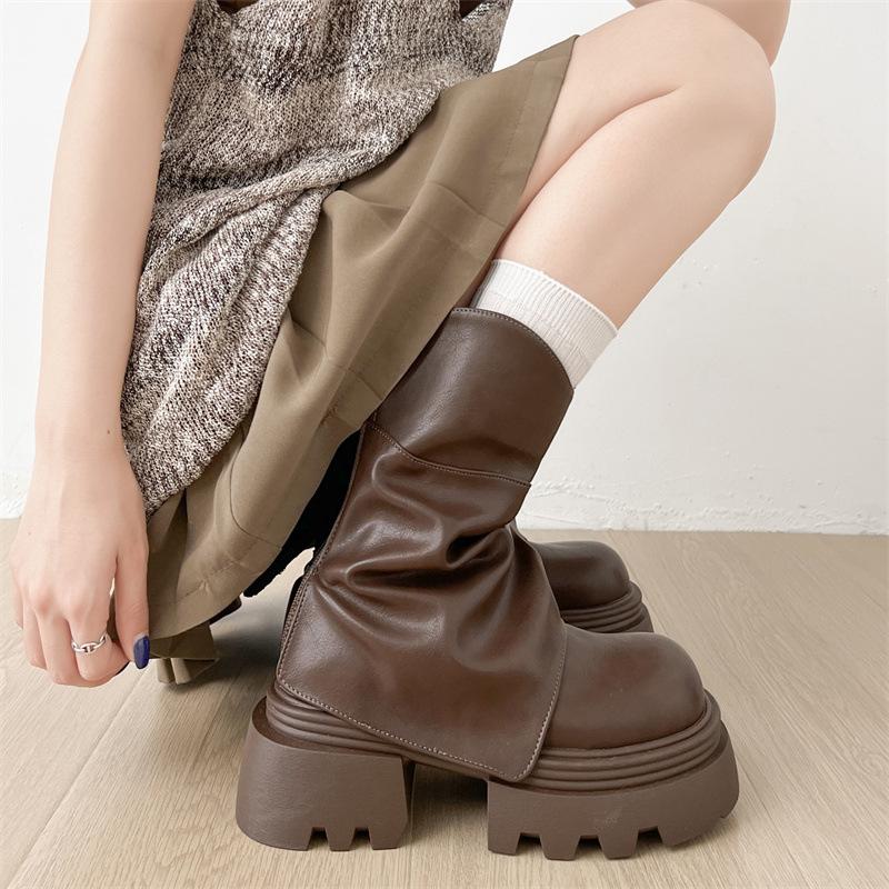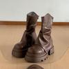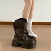 Vintage Maillard braune dicksohlige Stiefel mit dickem Absatz Damen 2025 neue Sommer höhenverlängernde und dünne kurze Stiefel