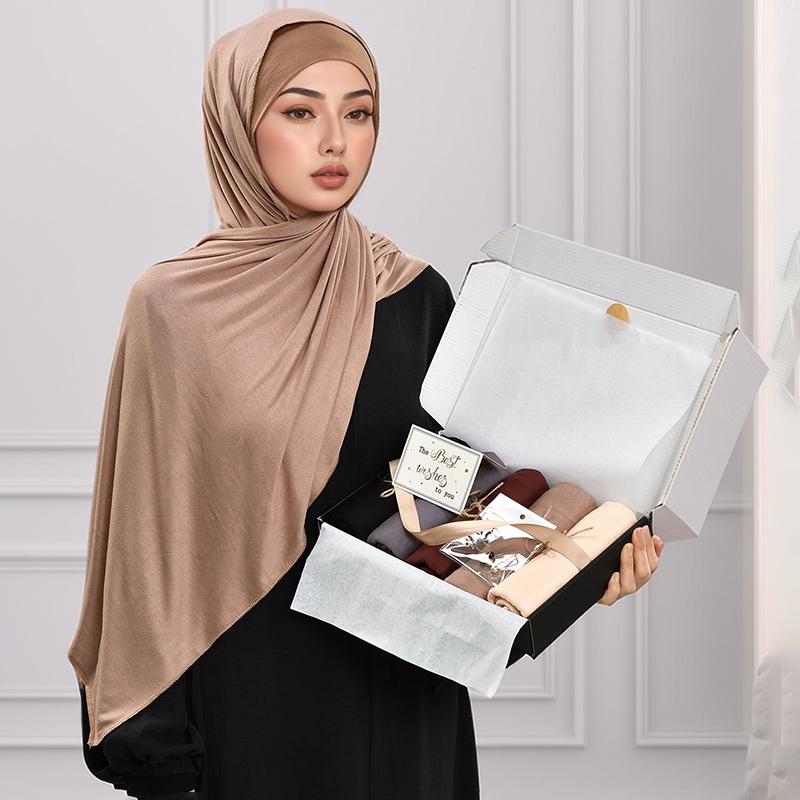 Ramadan Modal Chiffon Baumwoll-Hijab-Schal-Set, muslimisches Kopftuch mit Box, gemischtes Hijab-Stirnband, Kopftuch, weibliches Foulard-Hijab-Geschenk