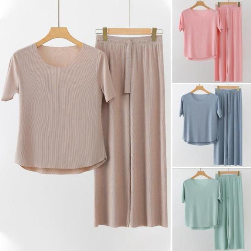 Damenmode Casual Sommer Frühling Einfarbig Druck Kurzarm O-Ausschnitt Blusen & Hemden Hosen Hosen Anzüge