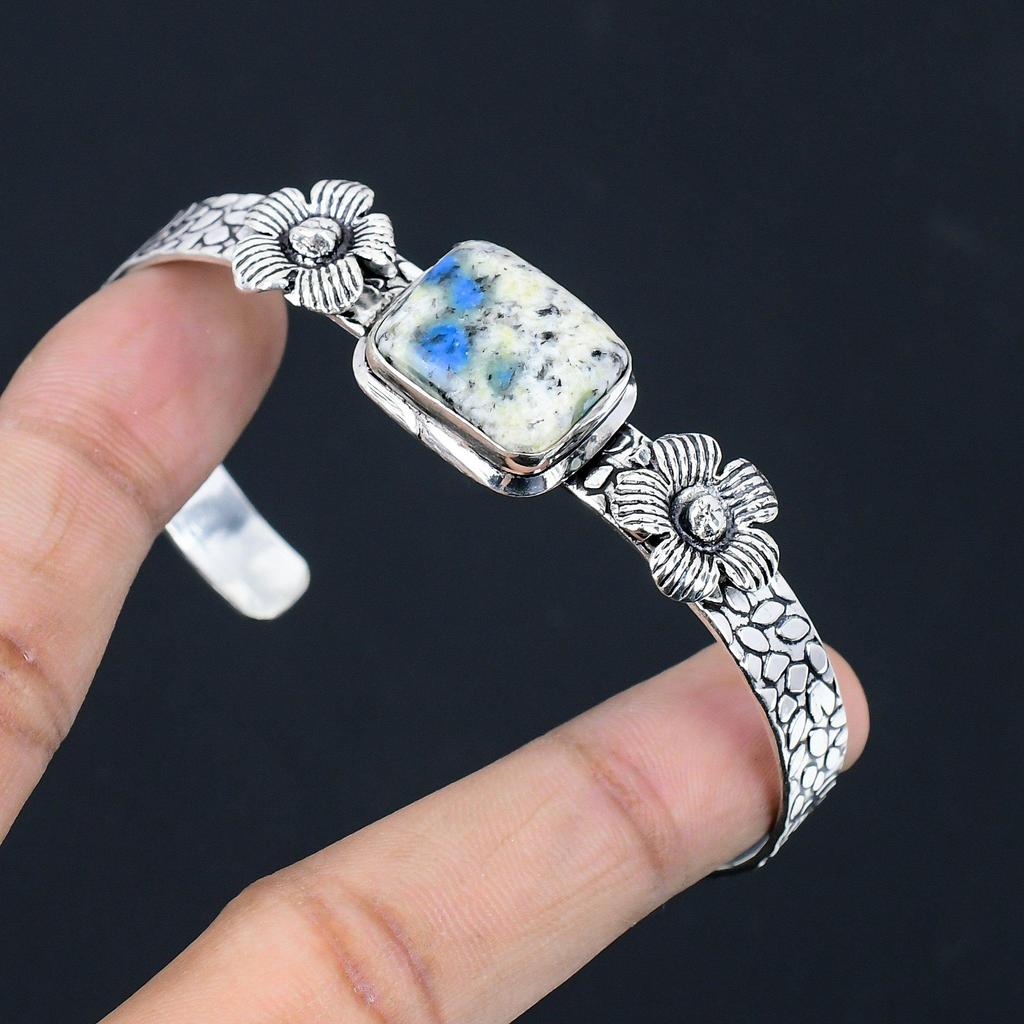 Mothers day Deal K2 Jasper Gemstone Flower Daughter Bangle Bracelet 925 Silver