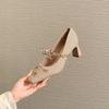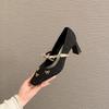 6413 High Heels Damen Dicke Ferse 2025 Neu Quadratische Spitze Mary Jane Schuhe Französische Schleife Gewebte Oberfläche Einzelne Schuhe