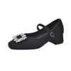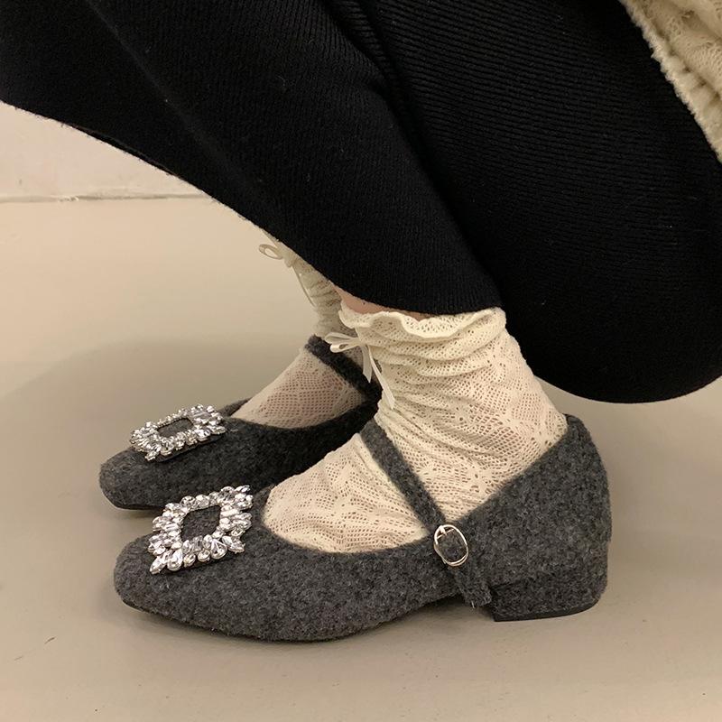 Französisches Temperament quadratischer Kopf Strass Licht Luxus Ein-Wort-Riemen Samt Mary Jane Schuhe Damen Wollschuhe Damen Winterbekleidung Einzelne Schuhe
