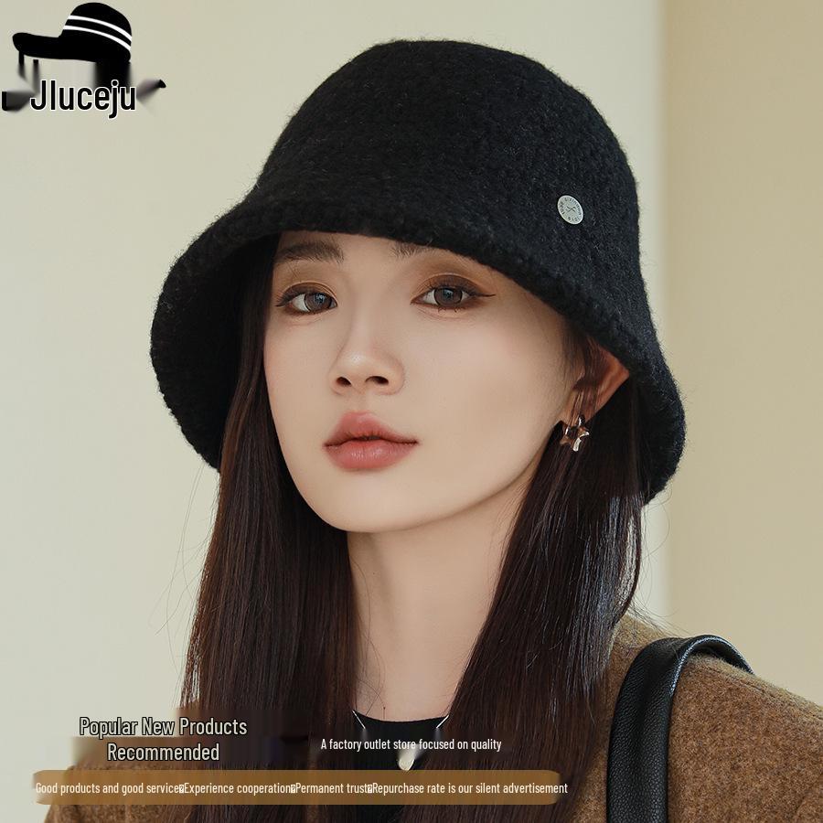 Körniger Woll-Damen-Bucket-Hat - Gesichtsschlankmachend, Breite Krempe, Warm für Herbst/Winter