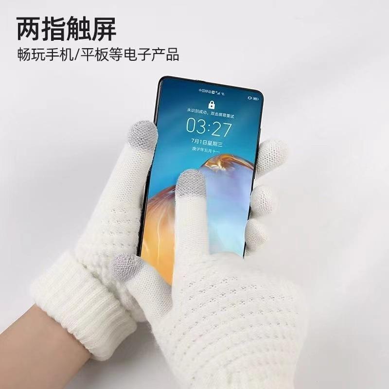 Winter cycling cold-proof and warm plush gloves female, cute student touch screen full-finger cotton knitted gloves driving