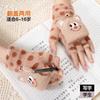 Children's winter half-finger flip cartoon knitted warm and velvet dew finger cute boys gloves girls cold